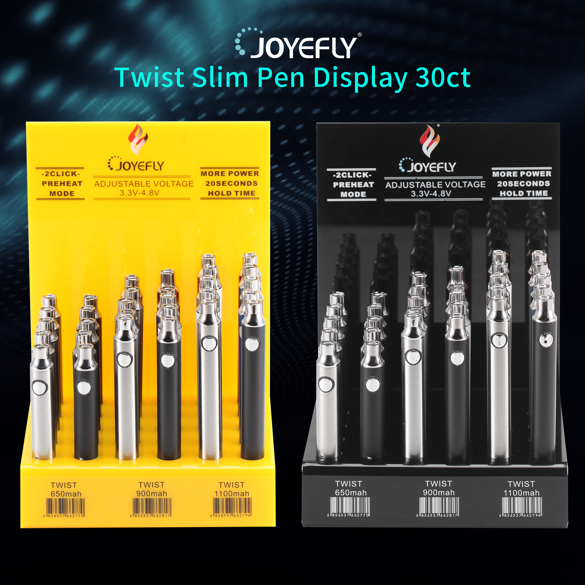 JOYEFLY TWISTY SLIM PEN DISPLAY wa:+8618138407901 , skype:LLZ3621 , Wechat: jenny3621 30 Count JOYEFLY Twist Batteries Pre heat mode 650, 900 1100 mah Batteries AdjustableVoltage: 3.3V - 4.8V 20-Sec Auto Shut-Off Click 5 Times Fast to Turn