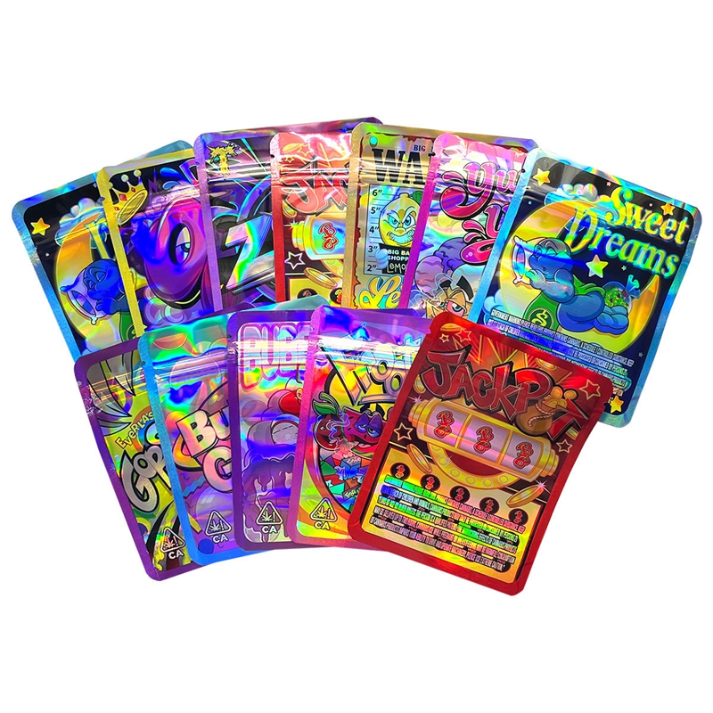 3.5G Mylar Bags Reuseable Custom design Shine Mylar bags Empty Reusable Mylar Bag: